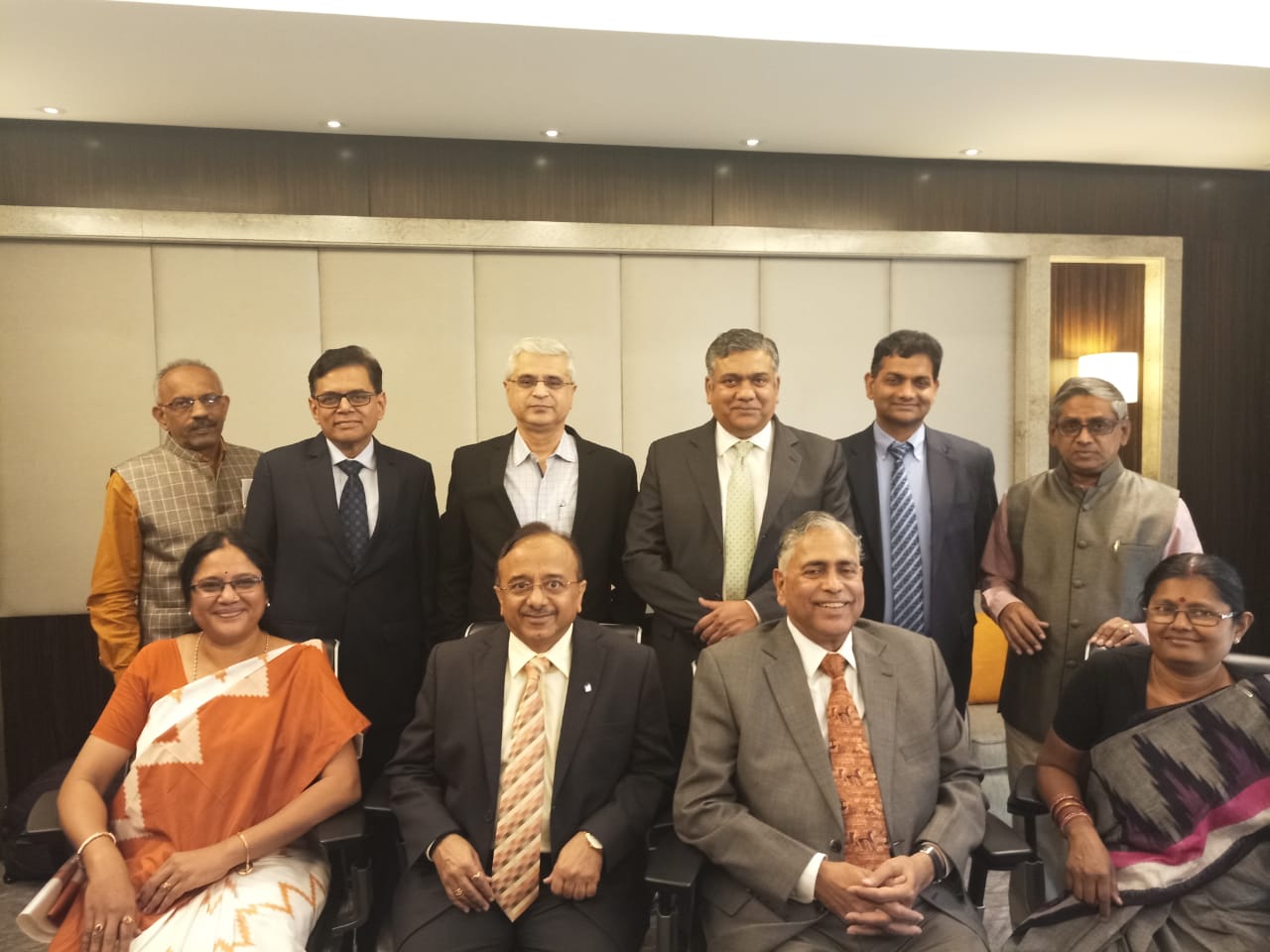 Group photo taken on the occasion of First Meeting of 2nd Executive Committee meeting of Life Insurance Council, 12th March 2019 (Front row Seating from left to right : Ms.Sreelakshmi Pandula , Shri Hemanth Bhargava , Shri K.N Srivastsava , Ms. NayanaMohanty) (Second row Standing from left to right:Shri. Nagendramurthy M.P , Shri. G. Murlidhar, Shri. TarunChugh , Shri. Kshitij Jain, Shri. V. Venkateswara Rao, Shri. V. Manickam).